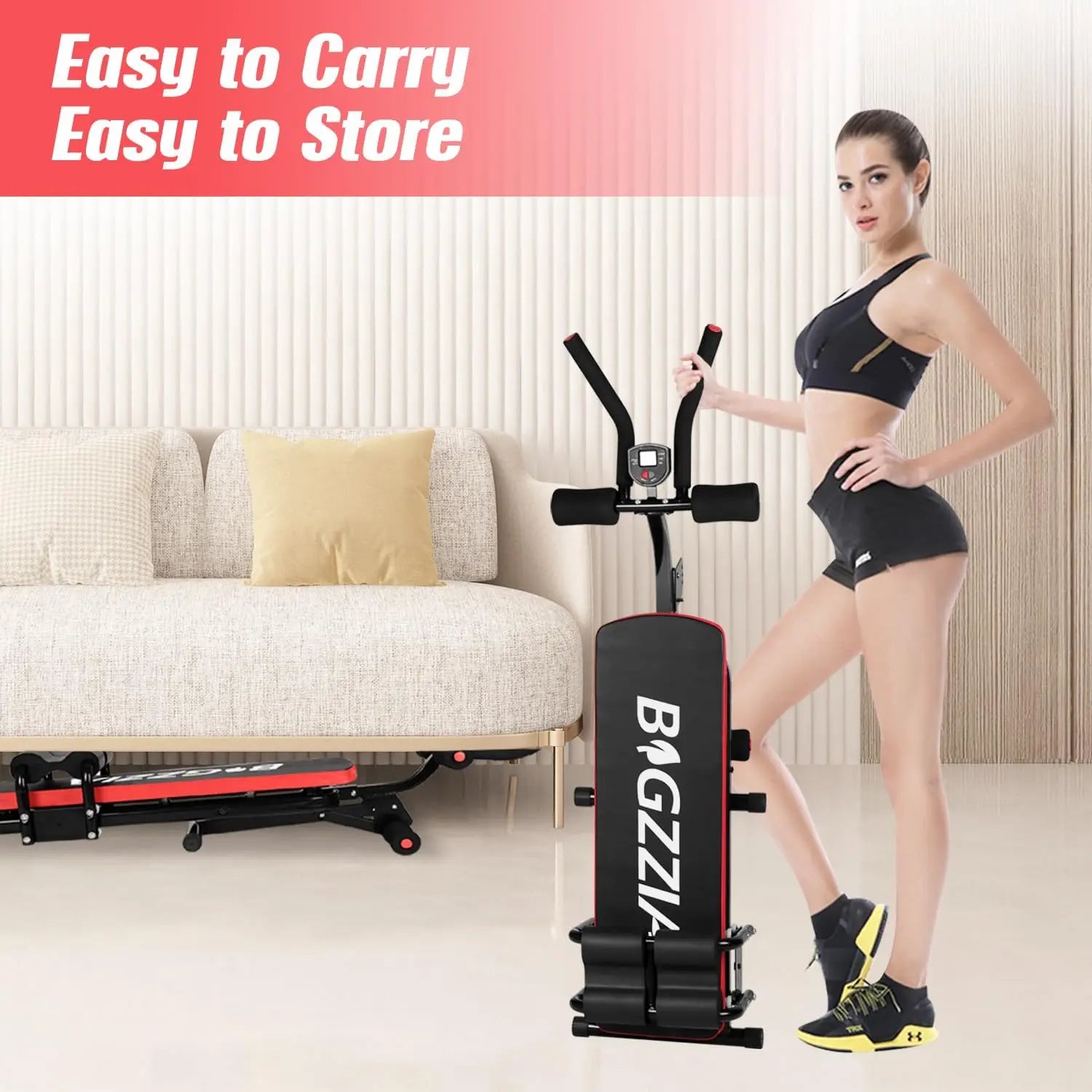 Adjustable Ab Exercise Bench, Abdominal Workout Machine Foldable Sit Up Bench, Full Body Exercise Equipment with LCD Monitor