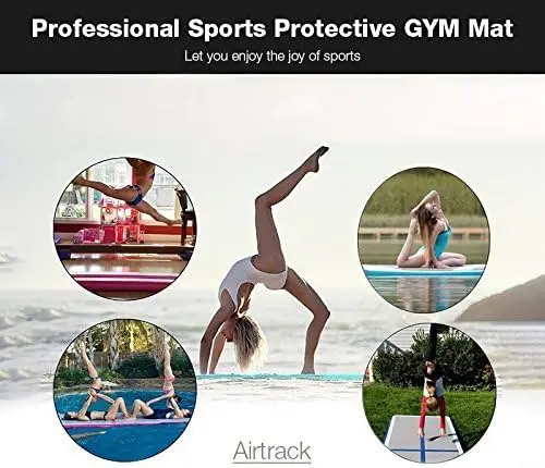 - WIDE APPLICATION: you can place the inflatable gymnastics mat on the artistic gymnastics floor,the gym floor, in high-performance training, fitness clubs,dance clubs, schools,gymnastic exercises,home entertainment, leisure centers, gymnasium, professional training, park or rental business. Also, it could be used on beach or water,backyard, grass land for Cheerleading/Practice Gymnastics/Beach/Park/Home use.